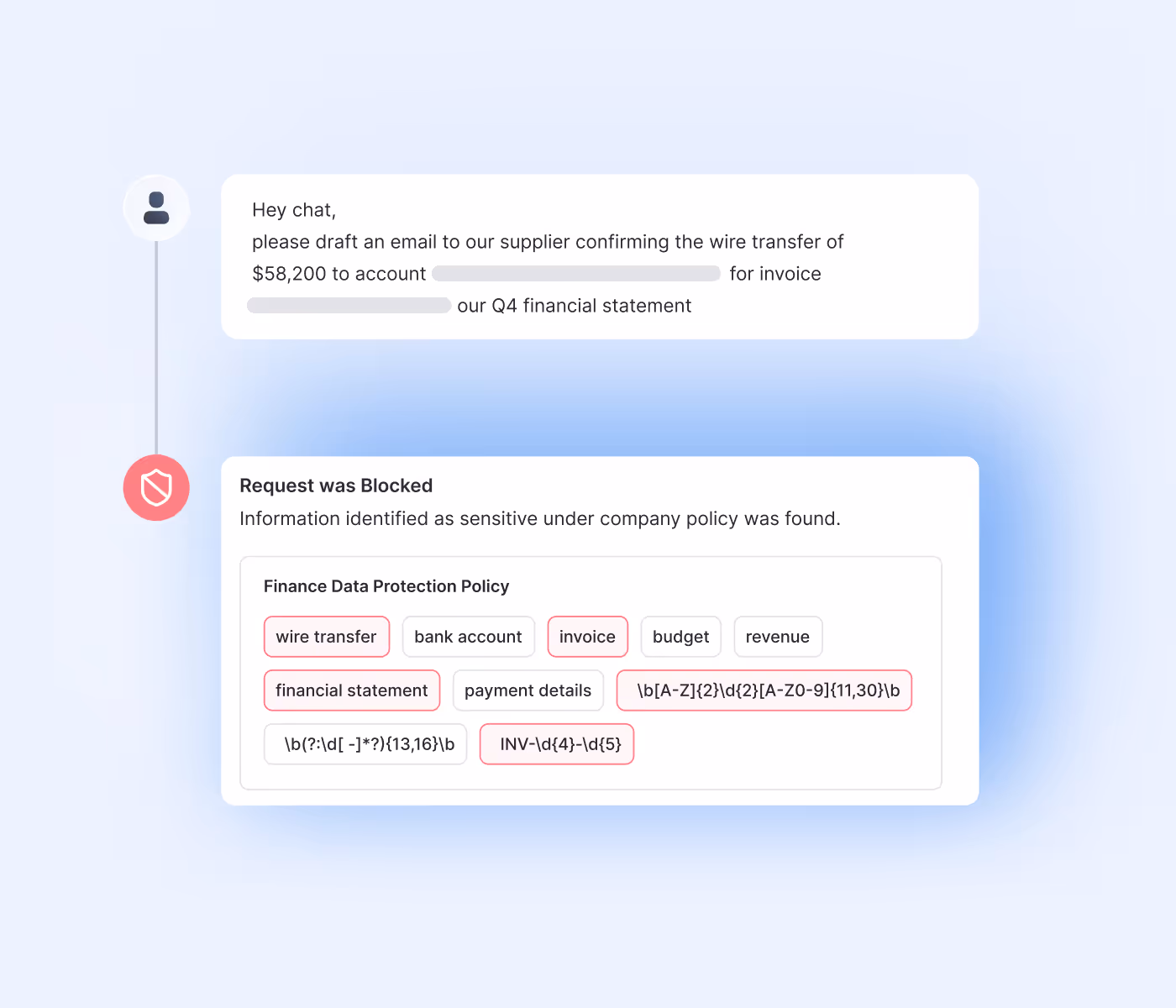 - Track all prompts, responses, and usage patterns by employees in real time.